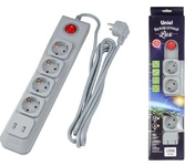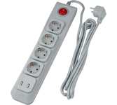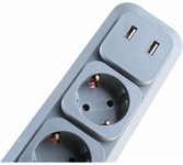 сетевой фильтр, 2 розетки, макс. нагрузка 2500 Вт, макс. ток 10 А, USB, заземление, выключатель на корпусе, длина кабеля: 2 м, белый