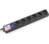Тип: Блок розеток; Цвет: черный; Количество розеток: 6 розеток; Шторки на розетках: есть; Отдельный выключатель для каждой розетки: нет; Максимальный ток нагрузки: 10 А; Функции защиты подключаемых устройств: н/д; Индикация: индикация включения; ЖК-дисплей: нет; Кабелеукладчик: нет; Прочие особенности и свойства: Кабель для подключения к электросети - Приобретается отдельно, Высота 1U, Установка в стойку 19", Выключатель с подсветкой и крышкой, C заземлением, Вход питания IEC-320-C14 (компьютерная