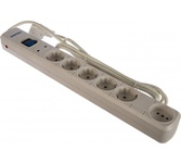 Омедненный (CCA) основной силовой кабель и все проводники. Длина шнура - 5м. Количество выходных розеток - 5. Входная вилка, тип - EURO. Выходные розетки с заземлением типа EURO - 5. Номинальное напряжение питающей сети - 220В. Максимальная рассеиваемая энергия - 107Дж. Максимальный импульсный ток помехи - 4500A. Частота сети - 50 Гц. Максимальная нагрузка - 2200Вт. Максимальный ток нагрузки - 10A. Подавление высокочастотных помех. Защита от короткого замыкания - биметаллический размыкатель. Защита от перегрева. Автоматический (термобиметаллический) предохранитель. Подавление импульсных помех. Индивидуальные выключатели розеток . Цвет - белый.