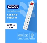 [сбр сетевые фильтры] CBR Сетевой фильтр CSF SP-6-018M-W, 10A, 6 евророзеток, защита от детей, 3x0.75мм2, медь, 1.8 м, белый