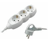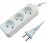 Номинальное напряжение, частота: 230В, 50Гц / максимальный ток нагрузки: 10А / максимально допустимая суммарная мощность нагрузки: 2200Вт (2,2 кВт) / тип провода (кабеля): ПВС / сечение кабеля: 2 х 0,75 мм? / длина провода: 4,5 м / количество штепсельных гнёзд: 3 / защитные шторки: нет / заземляющий контакт: нет / материал деталей контактных групп: латунь / материал колодки: пластик / степень защиты IP20 / крепление «Quick Fix» /