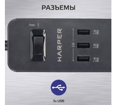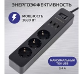 Сетевой фильтр с 3 x USB портами; Розетки 3шт; Длина кабеля 1.5 метра; Максимальная мощность 3680W (16A); 3xUSB (Максимальная сила тока на 1 USB порт: 3.4 А); Защитные шторки, Индикатор заземления, Индикатор работы; Стильный лаконичный дизайн; Высококачественный пластик; Питание AC 220-250V 50Hz. Вес: 380 гр.; Габариты 247х39х52 мм.