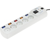 5 розеток (4 евро+1), снабжен варисторной защитой от импульсных помех и грозового разряда, имеет защиту от перегрузки и тока короткого замыкания, 5 м