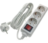 Cетевой фильтр, количество розеток - 5 (евростандарт с заземлением), номинальный ток нагрузки - 10А, номинальное входное напряжение - 220В, корпус из ударопрочного негорючего материала, длина кабеля - 3,0 м.