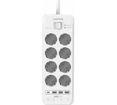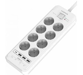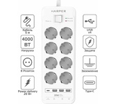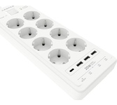 Удлинитель с 3xUSB+1xType-C (Power Delivery 20Вт) портами; Розетки 8шт; Длина кабеля 5.0 метров; Максимальная мощность 4000W (16A); 3xUSB, 1xType-C (Максимальная суммарная сила тока: 6.0 А); Выключатель с защитой от перегрузок; Защитные шторки, Индикатор заземления, Индикатор работы; Индикатор защиты от перепада напряжения; Отверстия для крепления на стену; Стильный лаконичный дизайн; Высококачественный пластик; Питание AC 220-250V 50Hz. Вес: 1150 гр.; Габариты 297х104х40 мм.