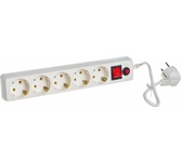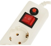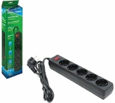 Сетевой фильтр, 5 заземлённых розеток (евростандарт), снабженных кантом, автоматический предохранитель на 10 А, номинальное напряжение: 220 В, мощность нагрузки: 2.2 кВт, номинальный ток нагрузки: 10 А, ток помехи, выдерживаемый ограничителем: до 2.5 кА.