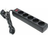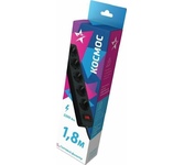 Cетевой фильтр, количество розеток - 5 (евростандарт с заземлением), номинальный ток нагрузки - 10А, номинальное входное напряжение - 220В, корпус из ударопрочного негорючего материала, длина кабеля - 1,8 м.