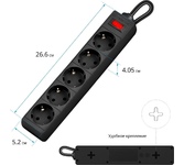 Защита от перегрузки и скачков напряжения Сетевой Колодка на 6 розеток. Длина провода 3 м. Провод ПВС с сечением 3*0,75 мм? Розетки с заземление Кнопка ВКЛ/ВЫКЛ Макс нагрузка 2200 Вт Сила тока 10А Негорючий пластик Цвет- черный