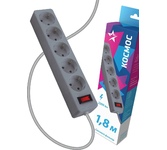Сетевой фильтр(варистор,терморазмыкатель),1,8м, на 5 гнезд с заземлением, сечения провода - 3*0,75мм2,Медь 100%,Индикатор сети. Номинальный ток 10А, максимальная мощность - 2200Вт.