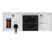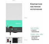 Максимальная полная мощность при входящем напряжении 220В: 500 ВА, Максимальная полная мощность при входящем напряжении 170В: 300 ВА, Номинальное выходное напряжение 230В -13%, +8%, Номинальная частота переменного тока: 50 Гц, Число фаз: 1, Время переключения: 20 мс,Защитные функции: Защита от повышенного напряжения, Защита от пониженного напряжения, Защита от перегрева, Защита от перегрузки, Диапазон входного напряжения: 140–270 В, Крепление на стену, Размеры без упаковки 29.0 x 6.5 x 16.0 см.
