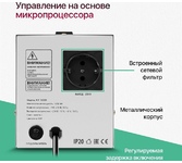 Автоматический стабилизатор напряжения, встроенный сетевой фильтр, максимальная полная мощность при входящем напряжении 220В - 1000 ВА, максимальная полная мощность при входящем напряжении 170В - 600 ВА, номинальное выходное напряжение 230В -13%, +8%, номинальная частота переменного тока 50 Гц, число фаз -1, защитные функции: - защита от повышенного напряжения, от пониженного напряжения, от перегрева, от перегрузки, диапазон входного напряжения - 140–270 В, способ подключения - штепсельные разъемы типа "F", количество розеток - 1 шт., розетки с заземлением - 1 шт., дисплей LED, габаритные размеры - 16.3 x 22.2 x 12.4 см.