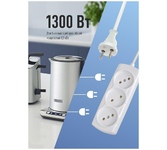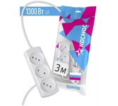Удлинитель, количество розеток - 3 , максимальный ток нагрузки - 10 А , суммарная мощность нагрузки - 2,2 кВт, корпус из ударопрочного негорючего материала, долговечный кабель, длина кабеля - 3,0 м.