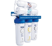 Тип очистки воды обратноосмотическая система Система очистки двухступенчатая Подключение к водопроводу есть Фильтры/картириджи в комплекте Предфильтр сорбционный, обратноосмотическая мембрана, угольный постфильтр. Температура воды 4-до 40 С°С Место установки магистраль холодного водоснабжения Особенности Фильтрация загрязнений бактерий, органических примесей, растворенного железа, солей жесткости Особенности Максимально высокая степень очистки воды с высокой жесткостью. Размер Гейзер Престиж 2 в 5 раз меньше стандартных обратноосмотических систем. Система контроля от протечек. Система работает при давлении в подводящей магистрали от 2,5 атм. Корпус Цвет белый Материал корпуса пластик Размеры (ШxВxГ) 345x145x95 мм Габариты упаковки (ед) ДхШхВ 0.16x0.15x0.35 м Вес упаковки (ед) 5.75 кг