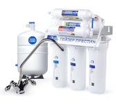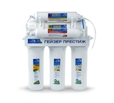 обратный осмос с минерализатором, кран 7 двойной Тип фильтра: Обратный осмос Кол-во ступ. очистки: 6 Ном.произв-сть (л/сут): 200 Накопит.бак (л): 12 Кран: №7 Насос: Нет Минерализатор: Да Состав картриджей фильтра Гейзер Престиж-М: 1-я ступень очистки (картридж PP 5 мкр.). Ресурс 20000 литров. 2-я ступень очистки (картридж СВС). Ресурс 7000 литров. 3-я ступень очистки (картридж СВС). Ресурс 7000 литров. 4-я ступень очистки (обратноосмотическая мембрана 50 галлон). Ресурс 1,5 - 2 года. 5-я ступень очистки (угольный постфильтр). Ресурс 1 год. 6-я ступень (минерализатор). Ресурс 1 год. Подходящий набор предфильтров Гейзер №6 Подходящий набор фильтров для полной замены Гейзер RO2