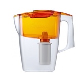 Объем кувшина общий, л: 2,5; Объем чаши, л: 1,6; Температура очищаемой воды: +4… +40 °С; Скорость очистки: до 0,4 л/мин; Ресурс картриджа: до 250 л. В комплект Гейзер-Мини входит картридж 301 для фильтра-кувшина, состоящий из уникального материала Каталон Кувшин Мини выполнен из высококачественного пищевого пластика. Оригинальным дизайнерским решением является сочетание матового и прозрачного пластика. Кувшин можно мыть даже в посудомоечной машине. Цвет оранжевый прозрачный