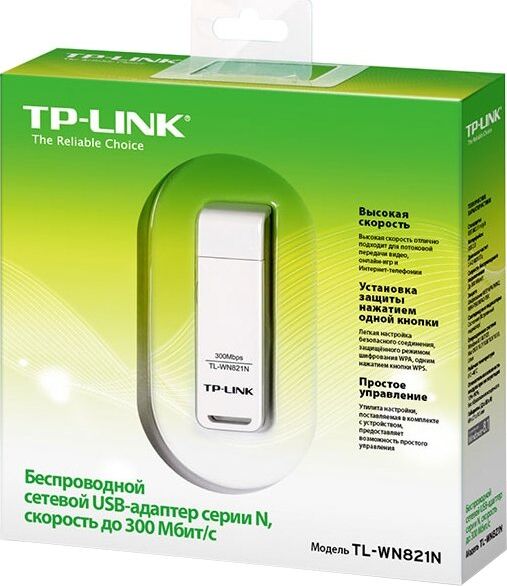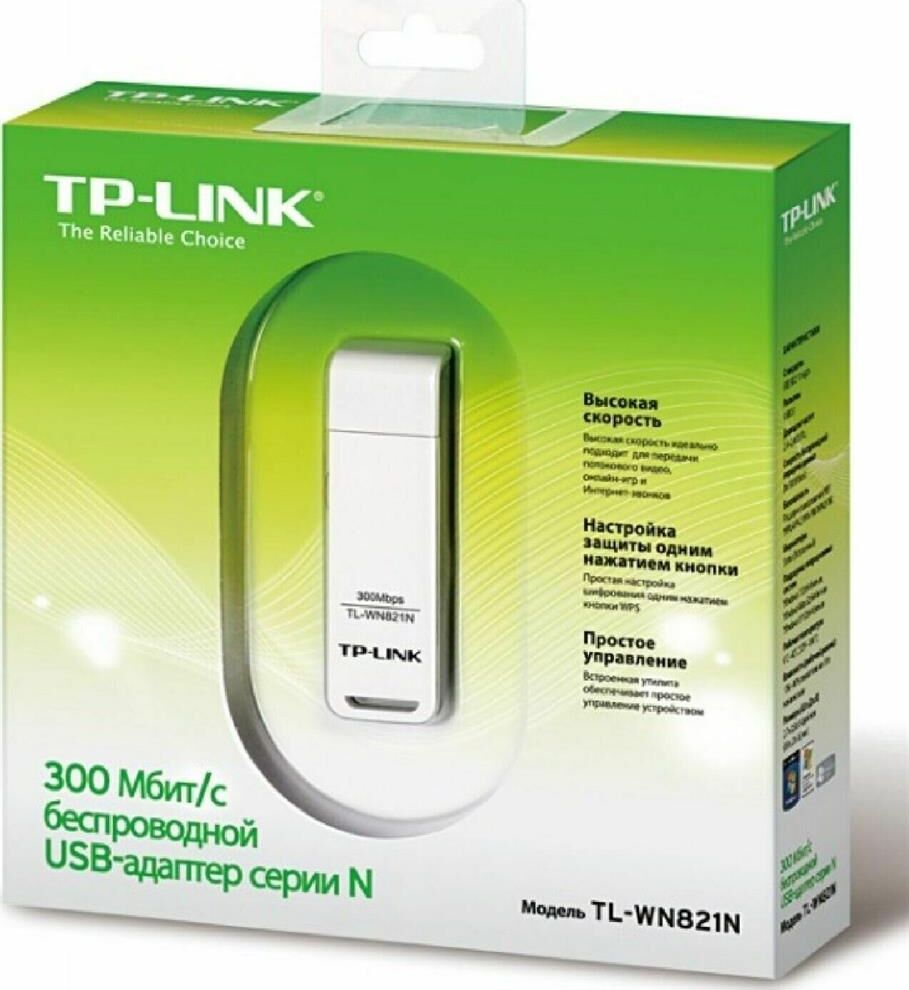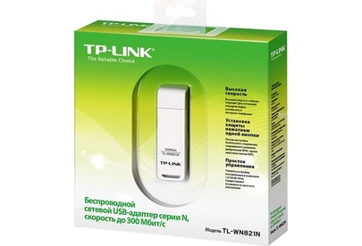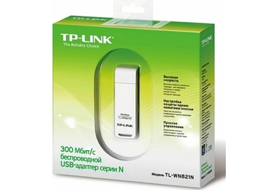 Адаптер TP-Link Wireless N TL-WN821N, Wi-Fi, SMA коннектор, Стандарт — 802.11n; интерфейс — USB; скорость — до 300 МБит/с; частота — 2.4 - 2.483 ГГц; индикация включения — есть