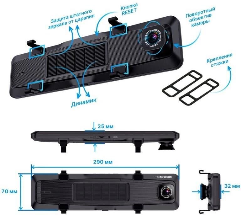 TRENDVISION Видеорегистратор aMirror 15 Android UNIVERSE, черный