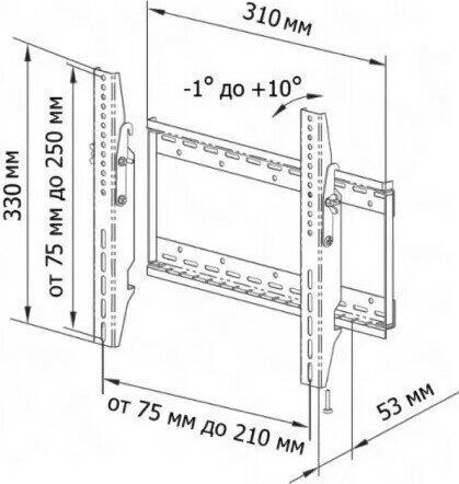 Кронштейн LPS 30-50 предназначен для крепления на стену LCD, LED, ЖК телевизора с диагональю экрана 17" -32" (43,2 см – 81,3 см) Тип: с наклоном ugolот -1° до 10°. Диагональ: 17" -32" (43,2 см – 81,3 см). Посадочные разм.: от 75 до 210мм (Г), от 75 до 250мм (В) Нагрузка: до 75 кг.