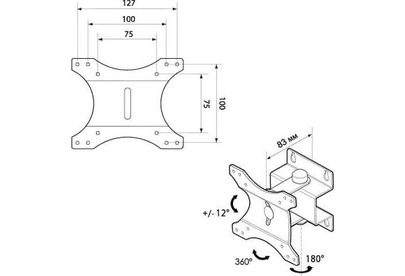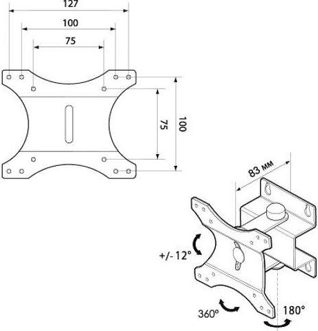 Для ЖК монитора от 15” до 23” габаритные размеры (Ш*Г*В) 265*28*123 мм VESA: 75х75, 100x100, 127х100. Нагрузка до 20 кг. Материал: сталь Цвет: черный.