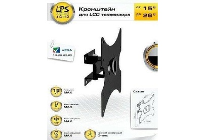 Для ЖК монитора от 15” до 26” габаритные размеры (Ш*Г*В) 230*79*230 мм VESA: 200x100, 200х200, нагрузка до 25 кг. Наклон -5*/+12*, Материал: сталь. Цвет: черный.