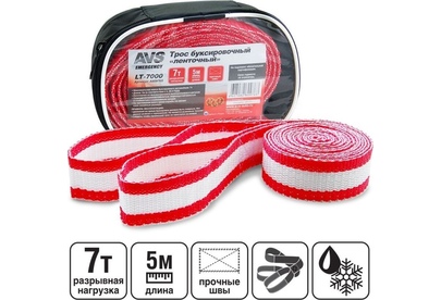 Трос буксировочный AVS LT-7000 без крюков 7т 5м, в сумке
