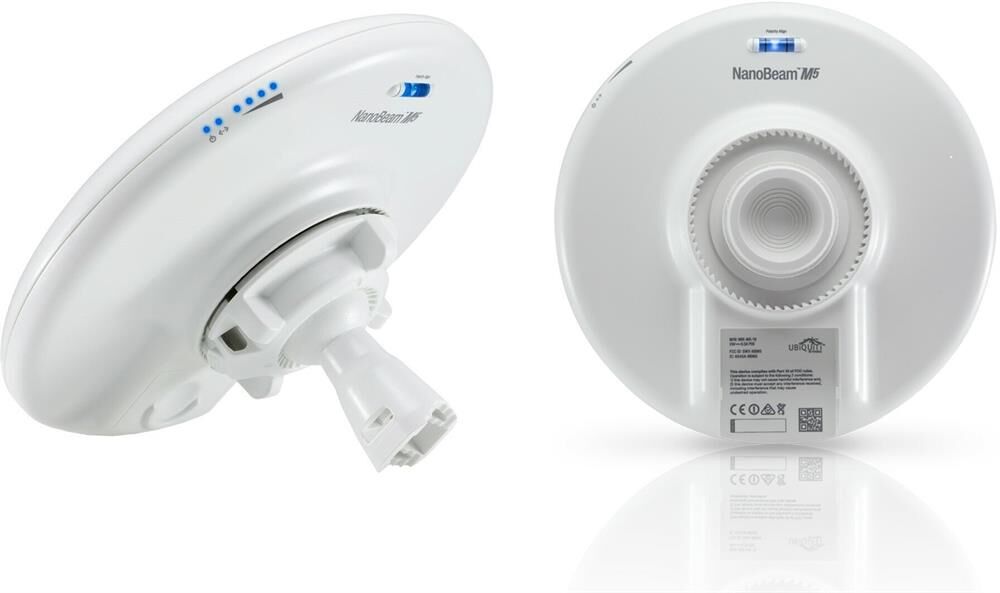 Общая информация Модель товараИнформация16NanoBeam M5-16 - это универсальное устройство компактных размеров, предназначенное для использования в качестве WiFi моста или внешней точки доступа. M5-16 представляет собой дальнобойный CPE-клиент к базовой станции с максимальной скоростью 150 Мбит/с. Модель работает на частоте 5 ГГц и оснащена антенной 16 dBi. Дальность действия достигает 5 км. Описание ОсновныеКонструкцияуличнаяСтандарты беспроводной связи802.11n (+airMAX)
