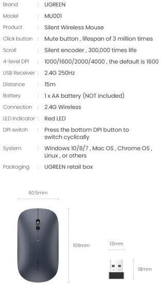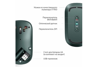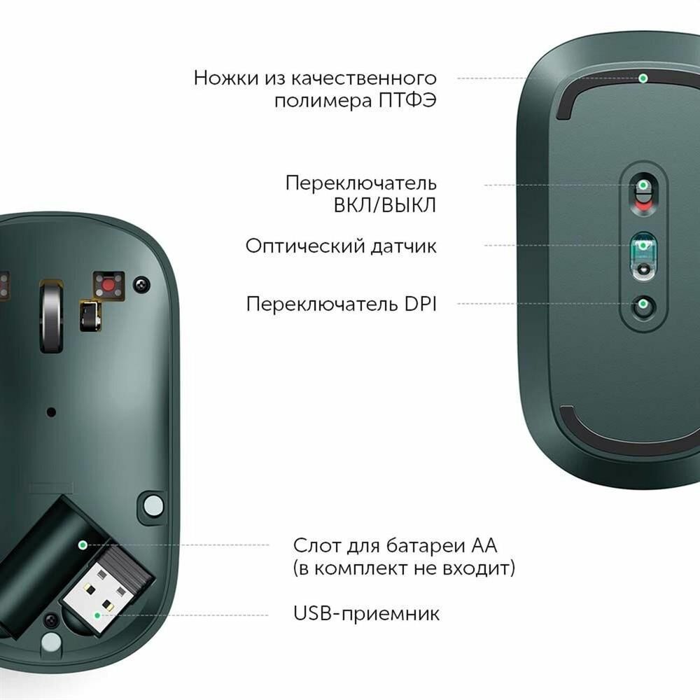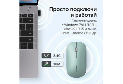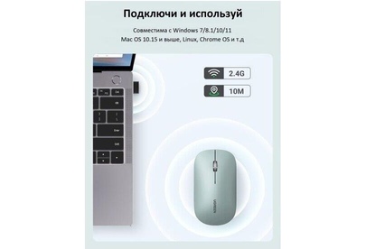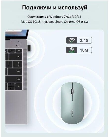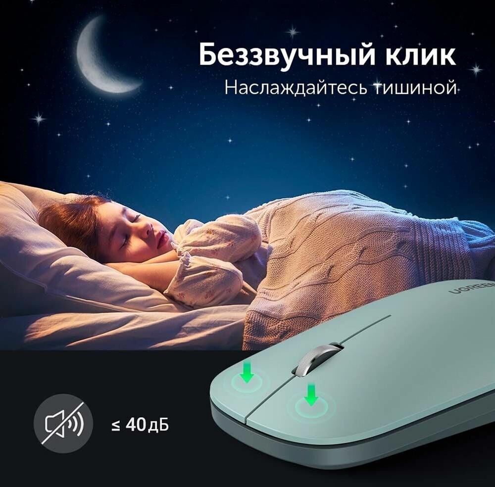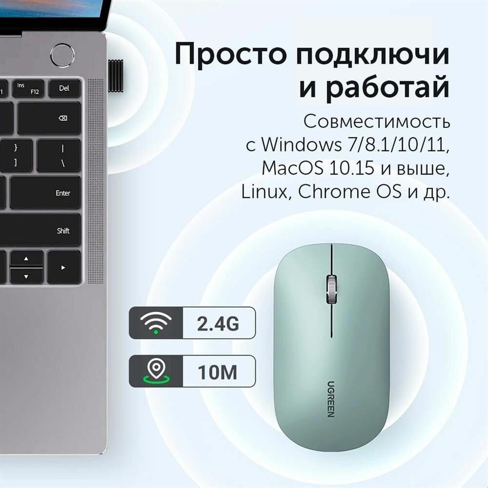 UGREEN Беспроводная компьютерная мышь MU001 (90374) Portable Wireless Mouse. Цвет: зеленый