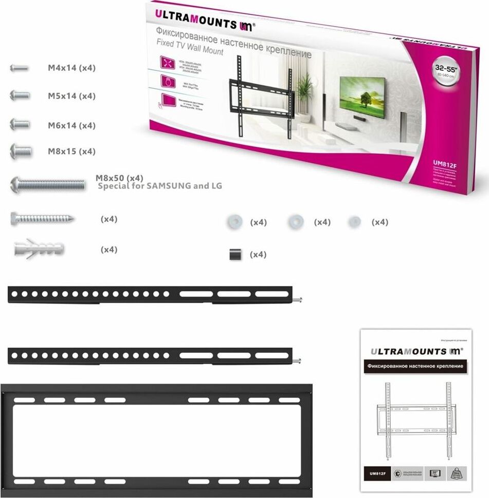 черный";"Для использования с телевизорами диагональю 32"-55", весом до 40кг.Расстояние телевизора от стены 19.5мм. VESA 200х200, 400х200, 300х300 400х400"