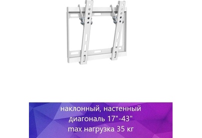 Для использования с телевизорами диагональю 17"-43", весом до 35кг. Расстояние телевизора от стены 25мм. VESA 75x75, 100x100, 200x100, 200x200. Возможен наклон до 14 градусов