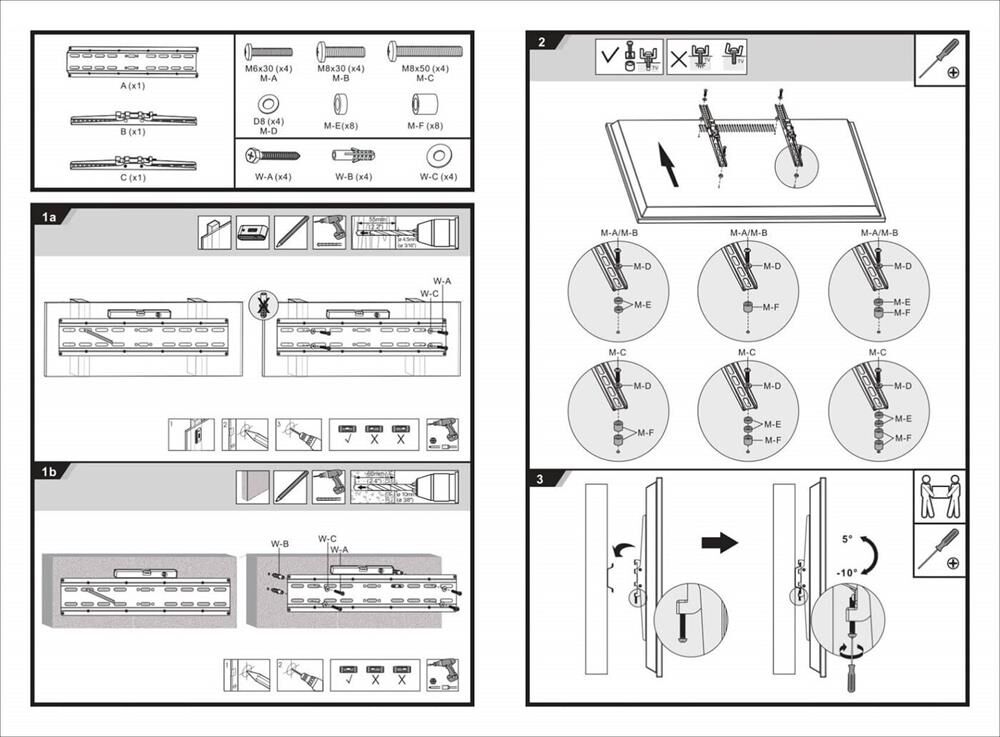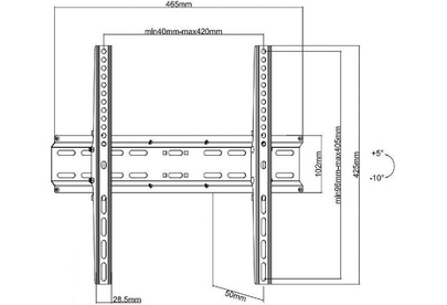 Для использования с телевизорами диагональю 32"-55", весом до 35кг. Возможен наклон до 10 градусов и подъем до 7 градусов .Расстояние телевизора от стены 50мм. VESA 200x200, 300x200,300x300,400x200,400x300, 400x400