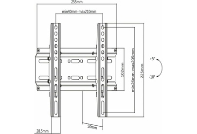 Для использования с телевизорами диагональю 23"-42", весом до 35кг. Возможен наклон до 10 градусов и подъем до 5 градусов. Расстояние телевизора от стены 50 мм. VESA 75x75,100x100,200x100,200x200 .