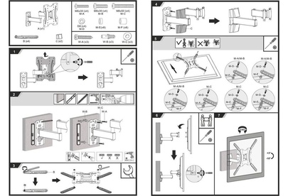 Наклонно-поворотный кронштейн со свободным наклоном. Открытая конструкция обеспечивает повышенную вентиляцию и облегчает доступ к проводам. Для использования с телевизорами 32"-55" весом до 20кг. Расстояние телевизора от стены 62~309мм. VESA 100x100,200x100,200x200,300x200,300x300,400x200,400x400. Возможен наклон до 10 градусов и подъем до 3 градусов. Поворот влево и вправо на 90 градусов .