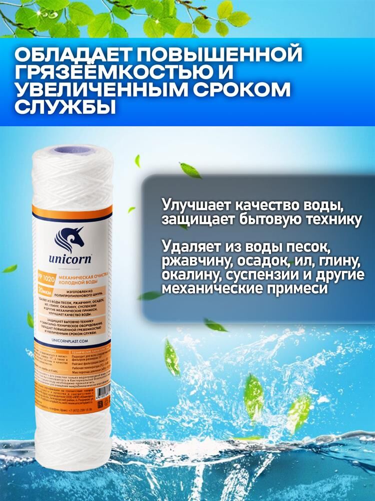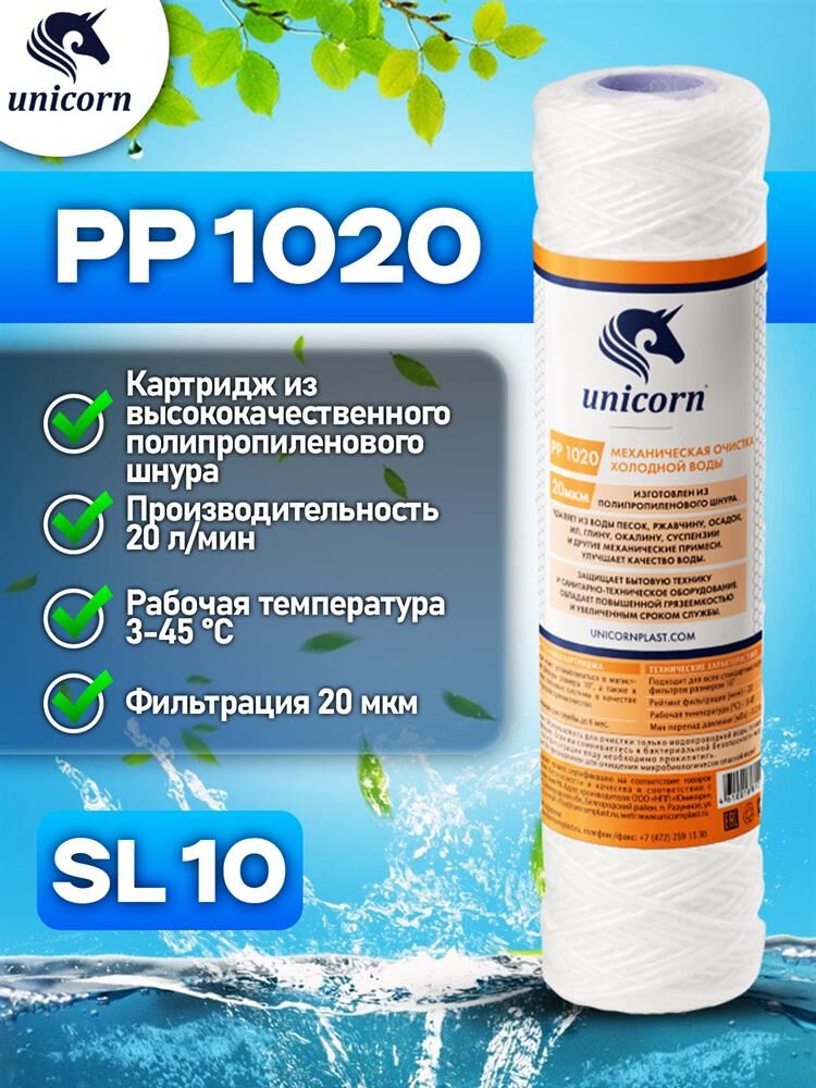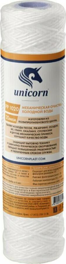 UNICORN Картридж механический из полипропиленового шнура 10" 20 микрон РР 1020 UNICORN