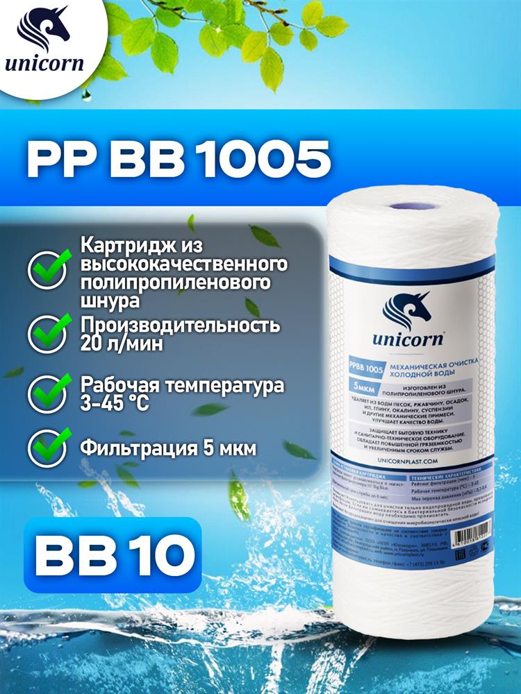 UNICORN Картридж механический из полипропиленового шнура для фильтров типа 10 ВВ 5 микрон РР ВВ 1005