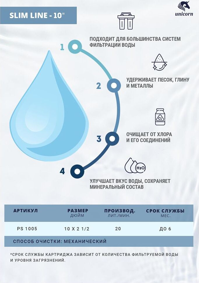 UNICORN Картридж механический из вспененного полипропилена 10" 5 микрон РS 1005 S