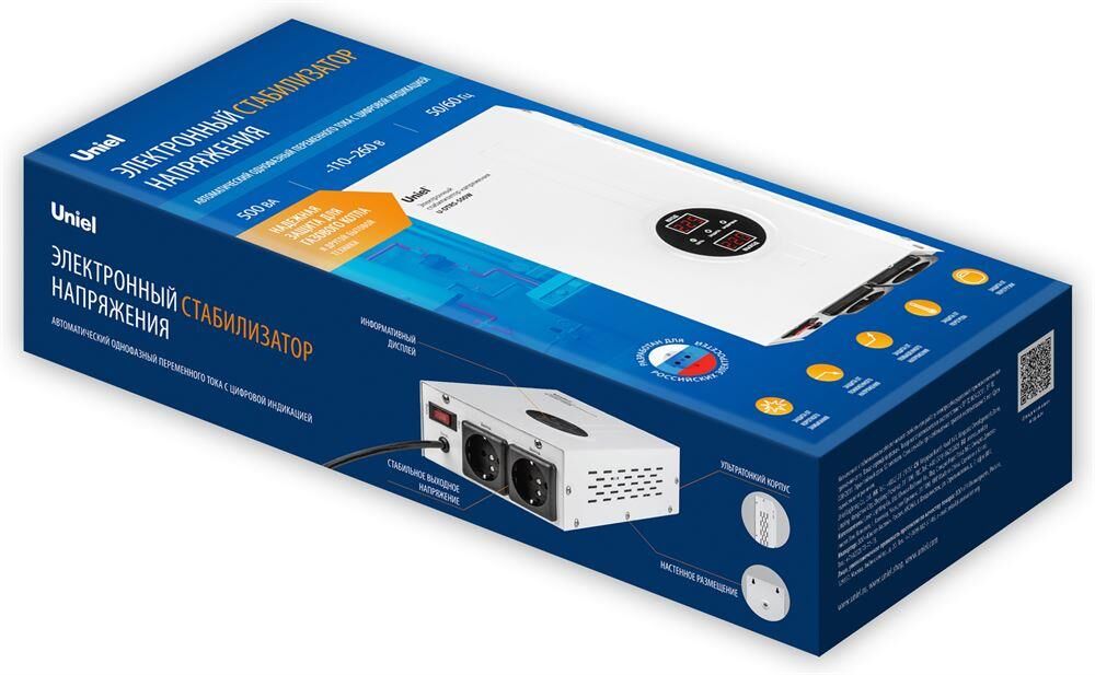 Входная частота, Гц - 50-60; Входное напряжение, В - 110-260; Выходное напряжение, В - 220; Высота изделия, мм - 70; Длина изделия, мм - 290; Ширина изделия, мм - 163; Длина провода, м - 1,45; Защита от импульсных перенапряжений - Да; Защита от короткого замыкания - Да; Защита от перегрева - Да; Защита от перегрузки - Да; Защита от повышенного напряжения - Да; Защита от пониженного напряжения - Да; Защита от поражения электрическим током - I; Размещение - настенное; Количество реле, шт. - 4; Количество фаз, шт. - 1; КПД, % - 97; Максимальное напряжение отключения нагрузки, В - 260 ± 2 (вход); Максимальный ток, А - 1,88; Минимальное напряжение отключения нагрузки, В - 110 ± 2 (вход); Точность стабилизации, % - ± 10%; Время отклика на изменение входного напряжения, млс - Менее 20 мс; Время непрерывной работы, ч. - не ограничено; Срок гарантии, мес. - 12 месяцев; Срок годности - не ограничен; Страна производства - Китай; Минимальная партия - 1; Назначение - БЫТОВОЕ ПРИМЕНЕНИЕ; Тип - Стабилизаторы напряжения; E (