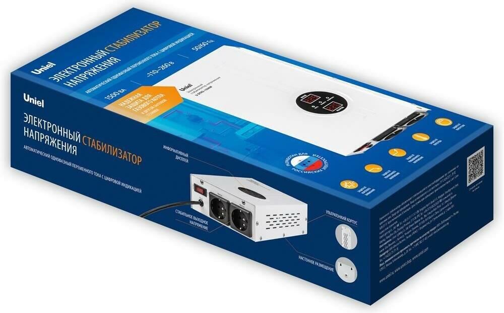Входная частота, Гц - 50-60; Входное напряжение, В - 110-260; Выходное напряжение, В - 220; Высота изделия, мм - 70; Длина изделия, мм - 290; Ширина изделия, мм - 163; Длина провода, м - 1,45; Защита от импульсных перенапряжений - Да; Защита от короткого замыкания - Да; Защита от перегрева - Да; Защита от перегрузки - Да; Защита от повышенного напряжения - Да; Защита от пониженного напряжения - Да; Защита от поражения электрическим током - I; Размещение - настенное; Количество реле, шт. - 4; Количество фаз, шт. - 1; КПД, % - 97; Максимальное напряжение отключения нагрузки, В - 260 ± 2 (вход); Максимальный ток, А - 5,64; Минимальное напряжение отключения нагрузки, В - 110 ± 2 (вход); Точность стабилизации, % - ± 10%; Время отклика на изменение входного напряжения, млс - Менее 20 мс; Время непрерывной работы, ч. - не ограничено; Срок гарантии, мес. - 12 месяцев; Срок годности - не ограничен; Страна производства - Китай; Минимальная партия - 1; Назначение - БЫТОВОЕ ПРИМЕНЕНИЕ; Тип - Стабилизаторы напряжения; E (