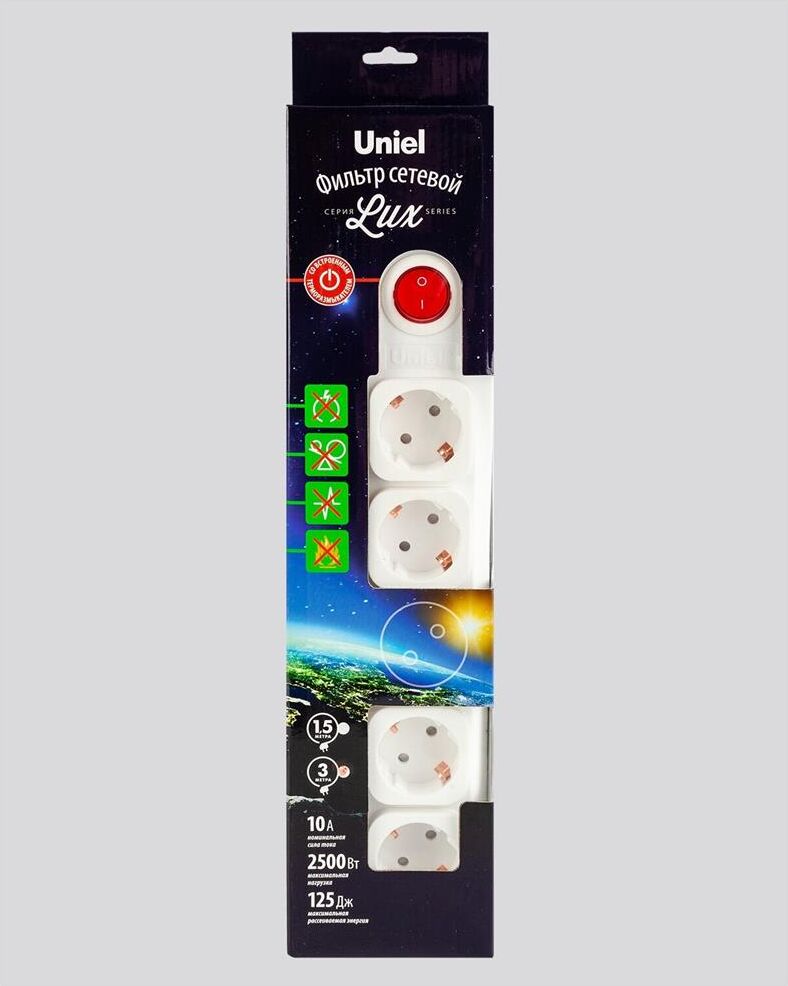 E (новинка) - Да; Группа эффективности - Оборотный товар; Длина кабеля, м - 3; Заземление - Да; Защита от перегрузки - Да; Количество гнезд, шт. - 5; Максимальная нагрузка, Вт - 2 200; Материал корпуса (изделия) - пластик негорючий; Минимальная партия - 1; Наличие выключателя - Да; Номинальная сила тока, А - 10; Сечение провода, мм2 - 0,75; Срок гарантии, мес. - 12 месяцев; Страна производства - Китай; Цвет корпуса (изделия) - белый