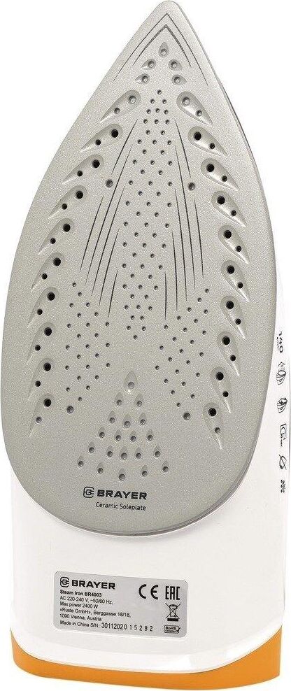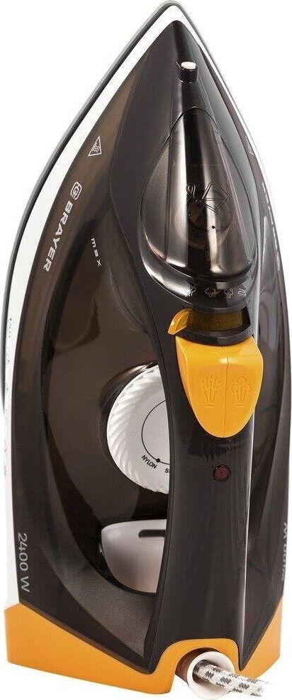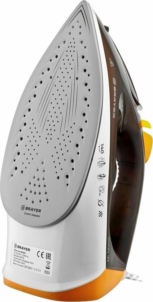 BRAYER BR4003мощность 2400 Вт постоянный пар 25 г/мин паровой удар 140 г/мин материал подошвы керамика вертикальное отпаривание есть автоматическое отключение есть дополнительные функции паровой удар, постоянная подача пара, система самоочистки, функция разбрызгивания, защита от накипи особенности шаровое крепление шнура защита от накипи, противокапельная система резервуар для воды 330 мл длина сетевого шнура 1.9 м входит в комплект мерный стакан