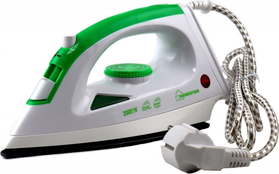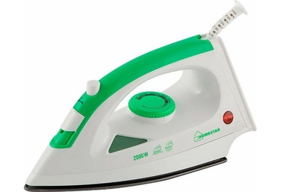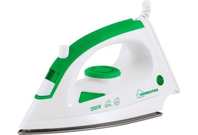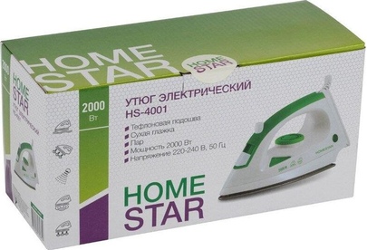 HOMESTAR HS-4001 бело-зеленый Тефлоновая подошва Сухая глажка Пар Длина шнура: 1,5м Мощность 2000 Вт Напряжение 220-240 В, 50 Гц Состав: металл, пластик