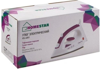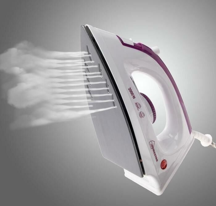 Мощность 2000 Вт. Тефлоновая подошва. Сухая глажка. Пар. Длина шнура: 1,5м.