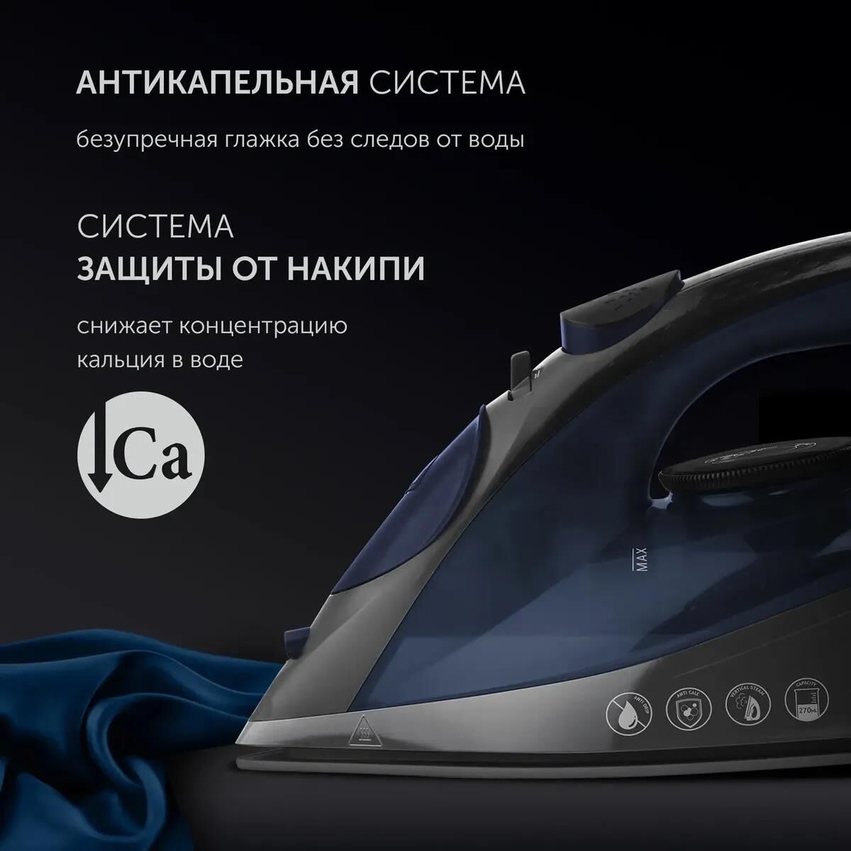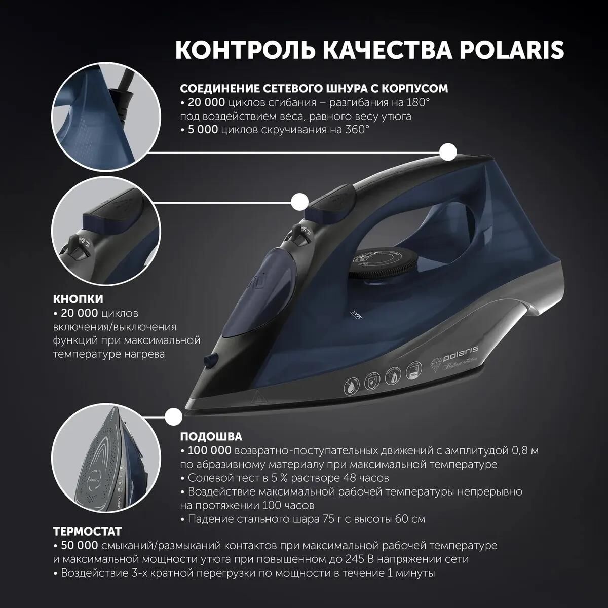 Утюг Polaris PIR 2430K, 2400Вт, синий/черный