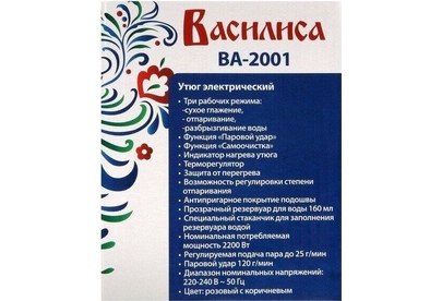 Утюг ВАСИЛИСА ВА-2001 розовый с коричневым