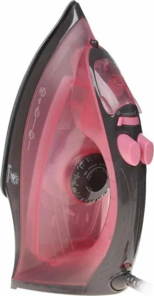 Макс. мощность 2200 Вт. Объем резервуара для воды 160 мл. Длина электрошнура 1,5 м. Подошва с антипригарным покрытием. Прозрачный резервуар для воды. Индикатор нагрева утюга. Терморегулятор. 3 рабочих режима: сухое глажение, отпаривание, разбрызгивание воды. Возможность регулировки степени отпаривания. Функция Паровой удар. Функция Самоочистка. Защита от перегрева. Цвет: розовый с коричневым.