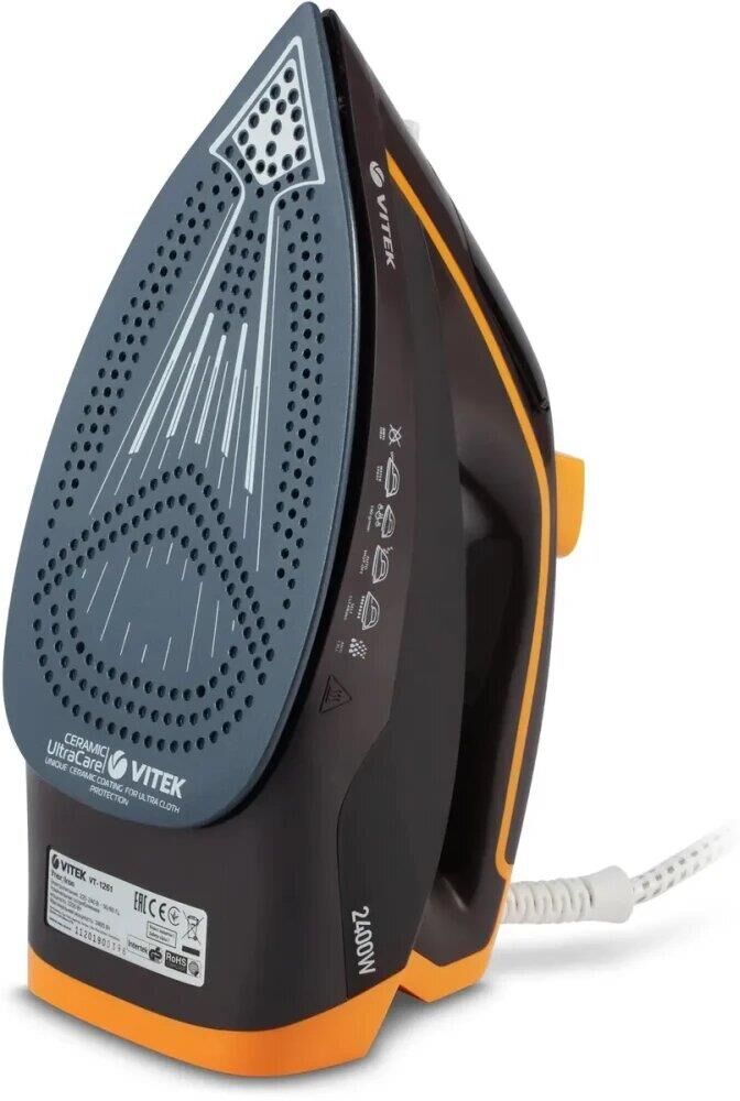 Утюг. Мощность: 2400 Вт, Материал подошвы: Подошва UniCera – уникальное двойное керамическое покрытие, обеспечивающее сверхлегкое скольжение по ткани, Паровой удар: 140 г/мин, Вертикальное отпаривание, Автоматическое отключение, Система самоочистки, Функция разбрызгивания, Противокапельная система, Защита от накипи, Объeм резервуара для воды: 300 мл, Регулировка подачи пара, Шаровое крепление шнура, Длина сетевого шнура: 1,8 метра, Мерный стакан, Цвет: Черный/оранжевый