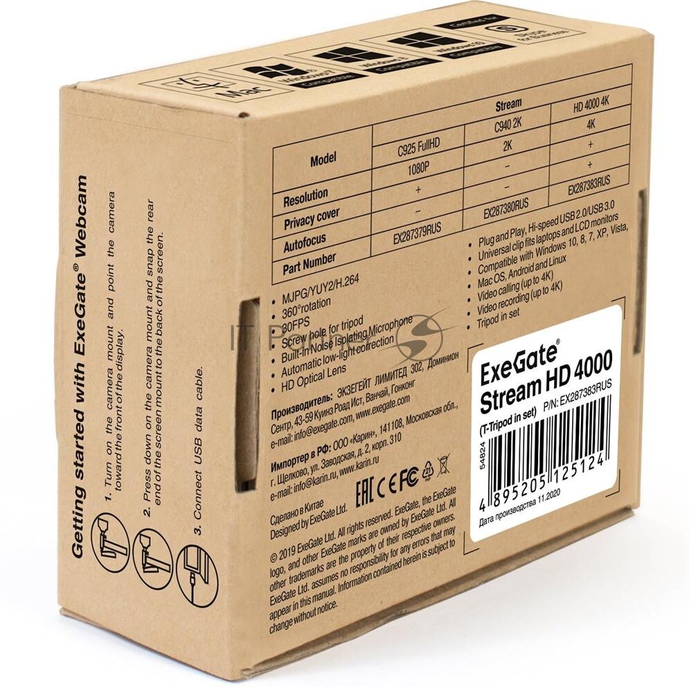 [веб камеры ] Exegate EX287383RUS Веб-камера ExeGateStream HD 4000 4K UHD T-Tripod (матрица 1/3' 8 Мп, 3840x2160, 32fps, 4-линзовый объектив (стекло), автофокус, шторка, USB, микрофон с шумоподавлением, поворотное Exegate EX287383RUS Веб-камера ExeGateStream HD 4000 4K UHD T-Tripod (матрица 1/3' 8 Мп, 3840x2160, 32fps, 4-линзовый объектив (стекло), автофокус, шторка, USB, микрофон с шумоподавлением, поворотное масса(кг)
