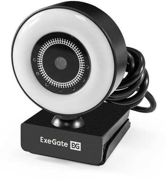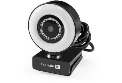 Веб-камера с подсветкой ExeGate eStudio EW-721 2K AF (5Мп, 2560х1440, 1440P, 30fps, автоматический фокус, подсветка, 4-линзовый объектив, стерео микрофон с шумоподавлением, универсальное крепление, отверстие под штатив, USB, кабель 1,5 м, Windows 7/8/10/11, Mac OS 10.6 и выше, Chrome OS, Android 5.0 и выше, RTL)