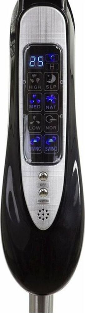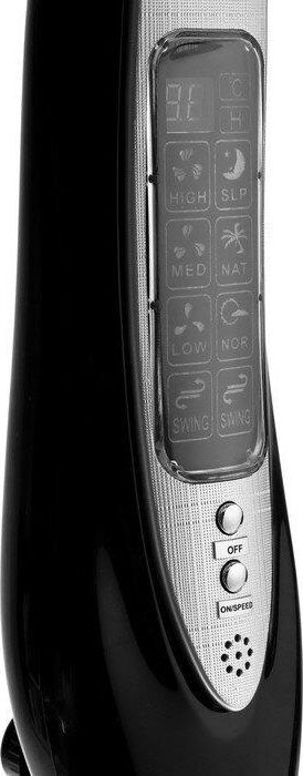 Диаметр 16", Круглая подставка, Высота 1,25м, LED дисплей, Лучевая решетка, 3 скорости, Таймер, Пульт ДУ, Измерение комнатной температуры, Режим "Natural" - имитация бриза, Регулировка наклона, Функция поворота, Мощность 50 Вт.