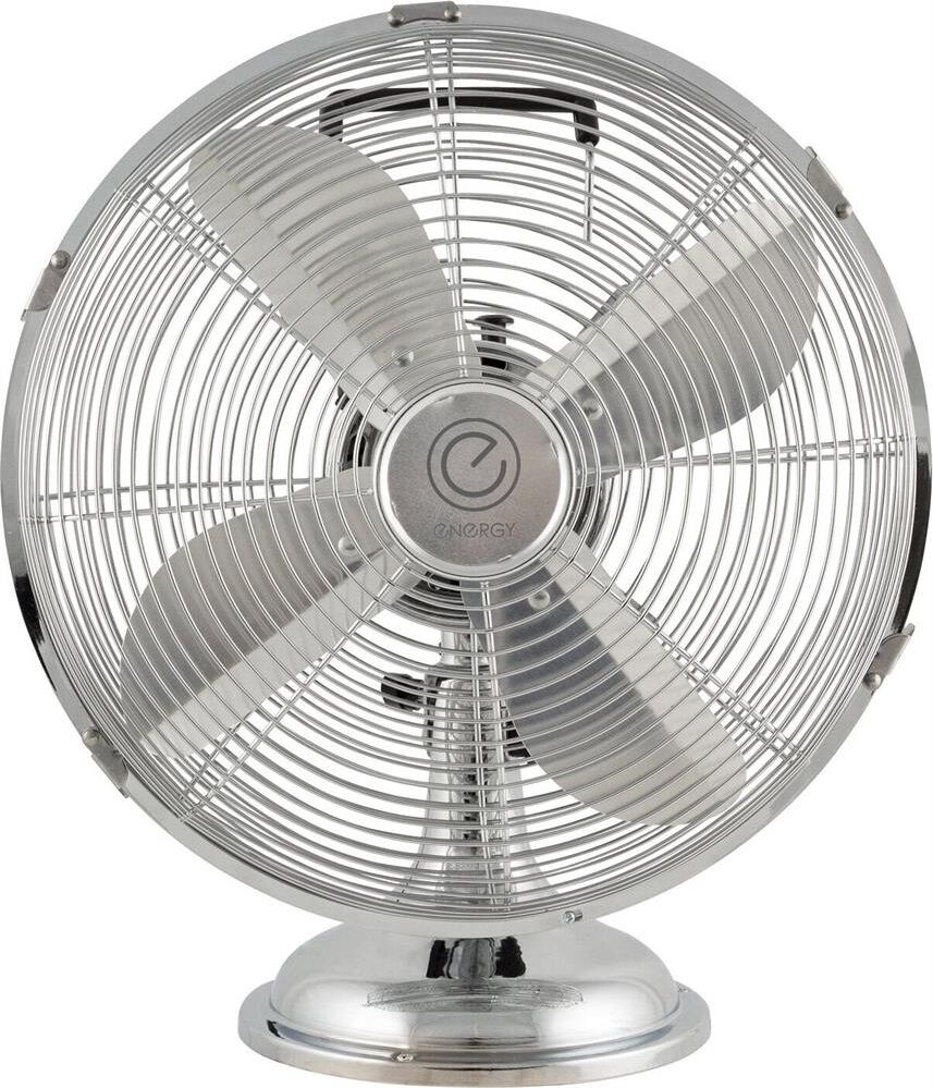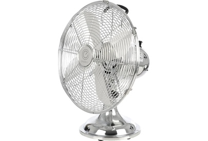 Серия Elegance. Диаметр 12". Современный дизайн. Металлический хромированный корпус. Алюминиевые лопасти. Ручка для переноски. Высота 41 см. 3 скорости . Функция поворота. Мощность 40Вт.