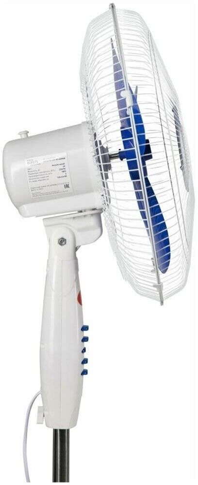 Цвет белый+синий Основание крестовидное Тип управления кнопочное Производительность, м?/ч 1800 Максимальная мощность, Вт 40 Размеры изделия (Д?Ш?В), мм 430?450?1200 Вес, кг 2 Угол горизонтального поворота 90° 3 скорости вращения Максимальная высота 1,2 м Подсветка Угол вертикального наклона 90° Регулировка высоты